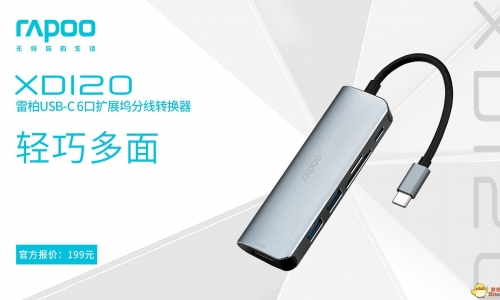 轻巧多面 雷柏XD120 USB-C 6口扩展坞分线转换器上市