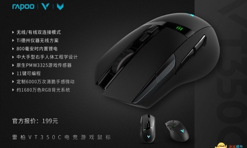 黑科技享无线 雷柏VT350C双模电竞游戏鼠标上市