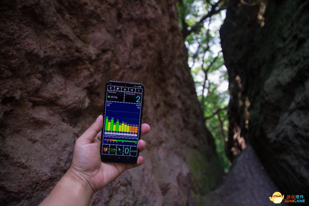 为了进行更极限GPS测试,我们还把联想Z6 青春版带到了杭州宝石山山顶的一处峡谷里,这里两边都是高耸的岩石,峡谷当中仅容一人侧身通过,在这样狭小的环境里,联想Z6 青春版还能连接6-15颗卫星,不过这时候定位的精度略有下降,误差在3 -15米。