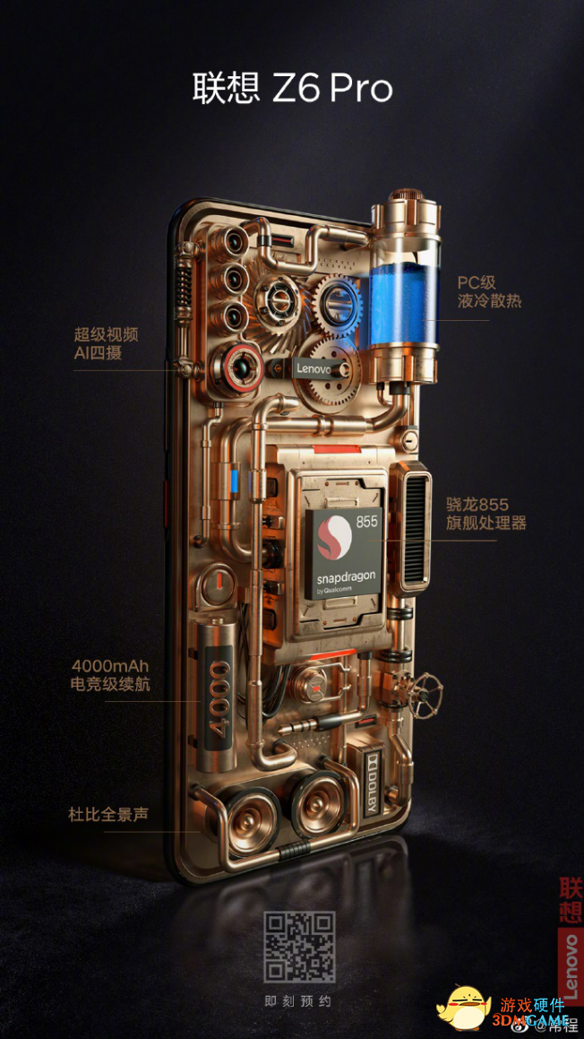 连着两个月的预热之后,联想Z6Pro在今天,又放出了一张硬照海报——后盖完全打开,露出质感满满的硬核工业质感。海报中也暴露了联想Z6Pro迄今为止的几个重大卖点:超级视频AI四摄、PC级液冷散热、骁龙855旗舰处理器、4000mAh电竞级长续航、杜比全景声……果然是值得期待的“真·硬核”机器。