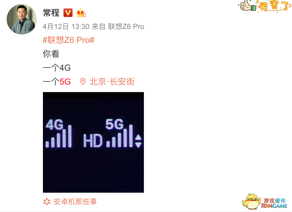 前几日,联想Z6Pro还赶在小米之前感受了新科技——常程爆料联想Z6Pro支持5G信号!