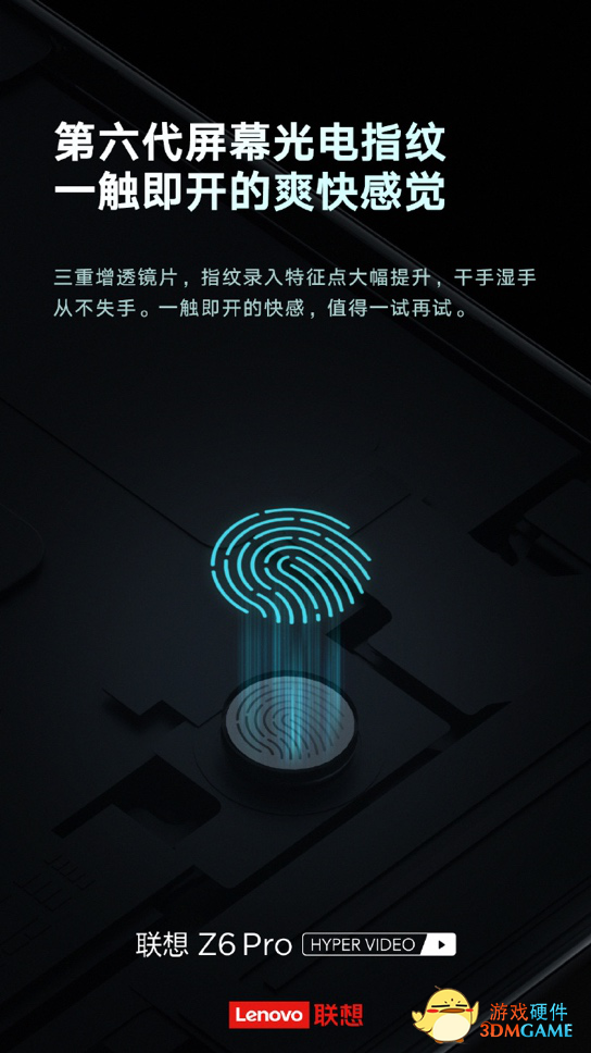 联想Z6 Pro这次在指纹录入技术上也是与时俱进,采取了与vivo、华为新机一样的第六代屏幕解锁技术,三重镜片加持,让指纹录入特征点大幅提升,保证持机人“干手湿手”都不用担心失手,迅速开机解锁。相比来说,小米9的解锁技术还是他们宣称的“第五代屏幕解锁技术”。