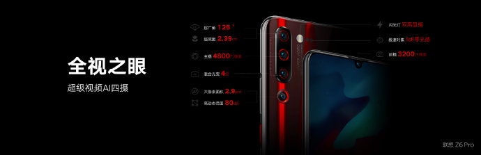 联想Z6Pro是联想倾力打造的全球第一款Vlog手机。联想Z6 Pro率先采用先进的HYPER VIDEO超级视频解决方案,在背部搭载超级视频四摄镜头,由4800万像素主摄、1600万像素超广角/微距镜头、800万像素长焦镜头及200万专用夜拍镜头组成,与前置摄像头3200万像素的偶像级自拍镜头,组成前所未有的“全视之眼”。