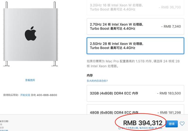 首先它的原始配置只要47999元的,但是要达到39.4万,首先得选英特尔用于服务器的至强28核CPU,这一项就要51380元。