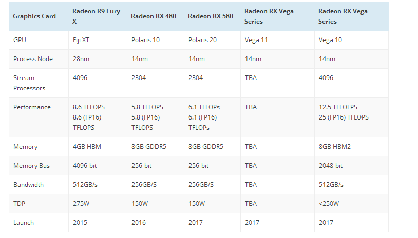 目前已知的其他信息还有,Vega显卡定名为RX Vega,集成HBM2显存。最高容量提供8GB。
