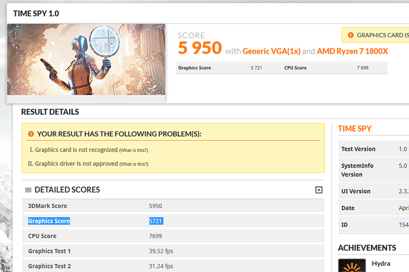 3DMark数据库里同样发现了疑似Vega的成绩,而且有两个,跑的都是DX12 Time Spy,分数分别为5950、9753(其中图形分数分别为5721、10158)——前者也就是比GTX 1070略微好一点,看来对应687F:C1,而后者已经超过了GTX 1080 Ti,那就是687F:C3!