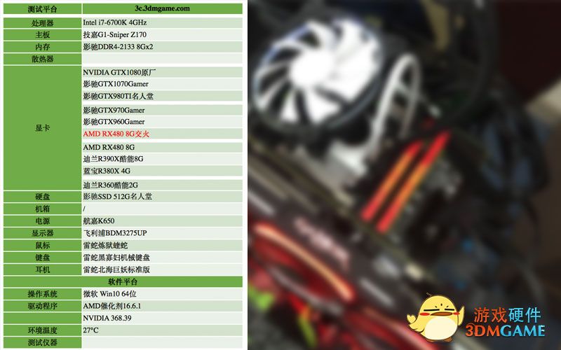 也对,目前GTX1080/1070的售价分辨是5399/3499元,而AMD最贵的RX480 8GB版本却只要1999元,既然差价如此之大,那么我们这次使用最为简单粗暴的方法——交火来让A卡翻身做地主!