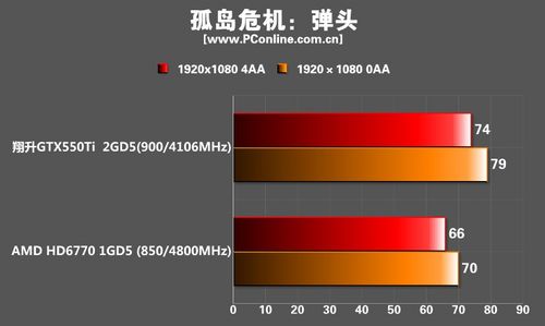 《弹头》测试中,两款显卡性能相当,翔升GTX550Ti 2G以两帧优势胜出。