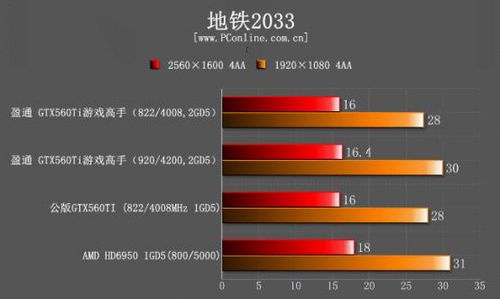 在《地铁2033》的测试环节中,盈通GTXGTX560Ti游戏高手显卡与公版GTX560Ti水平相近,并且两者的最低帧数都接近30帧,性能还是比较强。>>