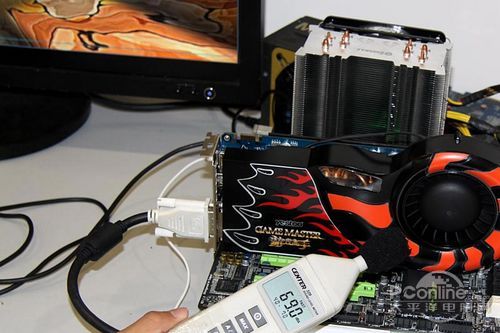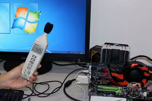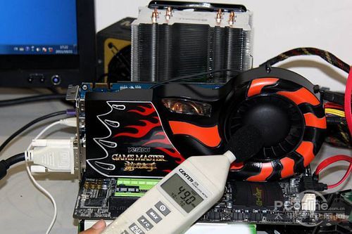 显卡待机时49.0分贝,比较安静的,显卡噪音与CPU风扇噪音相当