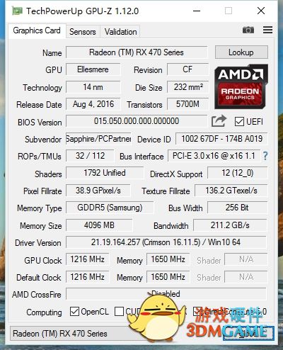 首先我们来介绍一下今天的主角:蓝宝石RX470D 4G D5 超白金 OC