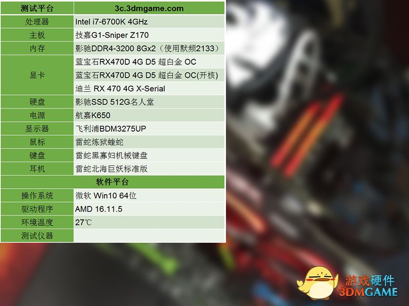 由于是A卡测试,所以郭少特地找了个DX12游戏做测试,而且加入了网络游戏的测试,让我们来看看开核后的RX470D显卡性能和普 通的RX470到底如何!