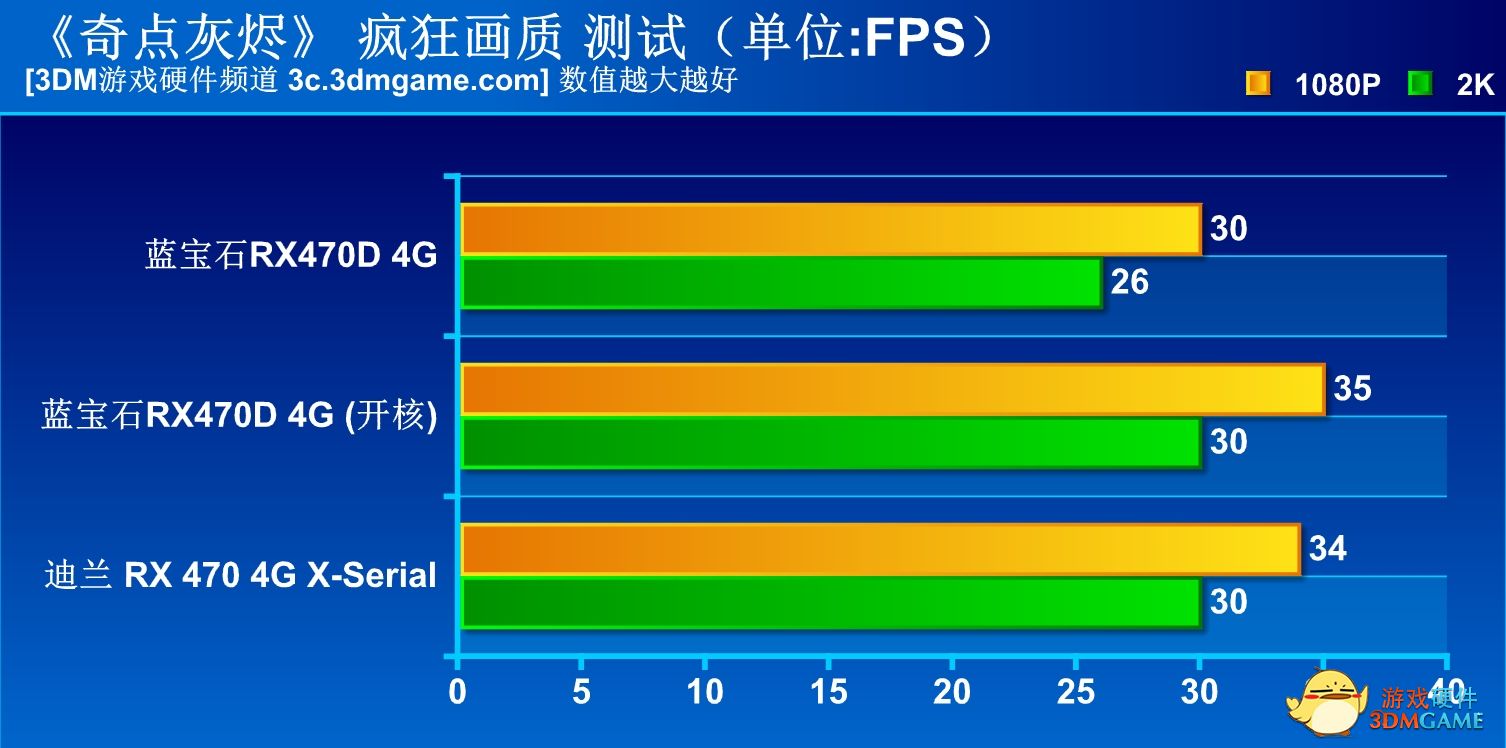 不愧是显卡危机,即使在1080P分辨率下RX470性能级别的显卡仍然没有办法全特效流畅运行,但是我们仍然可以看出开核之后的性能提升成果,看来这一次的开核并不会因为游戏的不同而产生性能上的变化,可以说是提升的彻底!