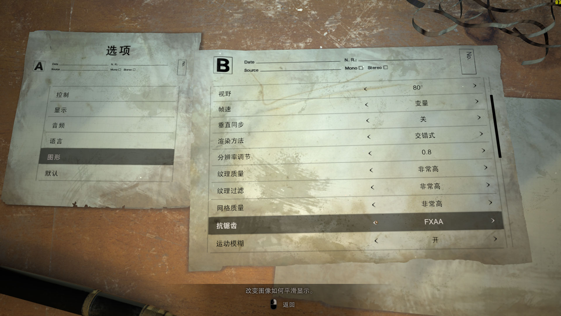 除此之外,尽管设置了交错式渲染,打开FXAA抗锯齿依然会使字体重新变得清晰。