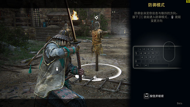至于攻击方式则比较容易被接受,左键轻攻击、右键重攻击、鼠标中键破防,同时在锁定敌人状态下通过移动鼠标方向可以分别防御上、左、右三个不同的方向,也就是说一定程度上游戏在考验玩家能否根据敌人攻击方向快速做出反馈的快速反应能力。