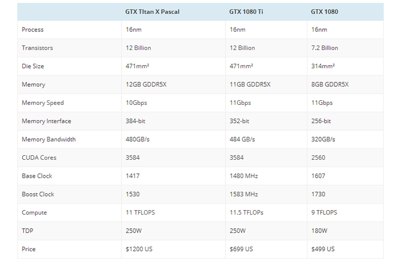 GTX 1080和GTX 1080Ti对比。