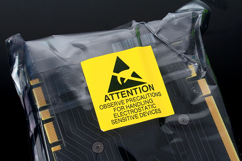 黄色贴纸标注着这是防止静电包装,也就是静电袋。