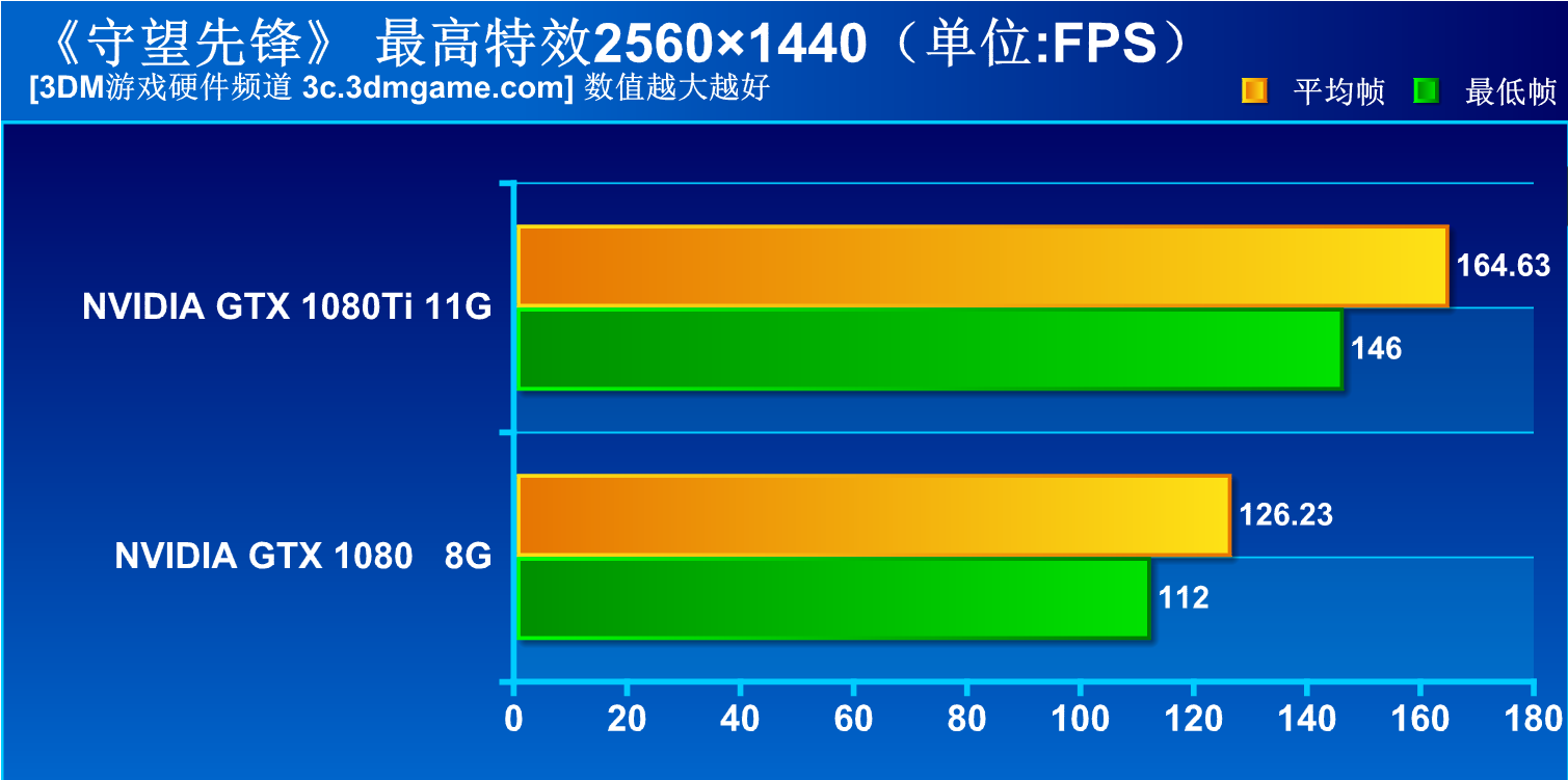 对于FPS游戏来说,保持144刷新率十分重要,试想一下当其他玩家快速转动视角时场景一片模糊,而你在快速转动视角时场景还能保持足够的清晰,在对战中会占有多大的优势。不过这次GXT 1080Ti在实战中虽然也没有保证4K全特效144刷新率,但就实际而言,4K144刷新率的显示器也少之又少,比较普遍的是2K分辨率144刷新率电竞显示器,在2K分辨率下GTX 1080仅能达到126平均帧,而GTX 1080Ti则有164的平均帧,甚至于最低帧也超过了144。