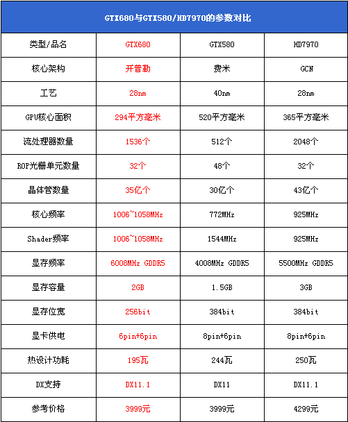 而AMD HD7970显卡需要采用6pin+8pin外接供电设计,TDP功耗250W。N卡旗舰终于在功耗上优于对手,这是A/N三代架构对比上的首次反超。由此可见,“开普勒”虽然比对手玩了三个月发布,但却带来了更性能、低功耗特性,更加符合时下趋势,是一代有全面突破的新架构。
