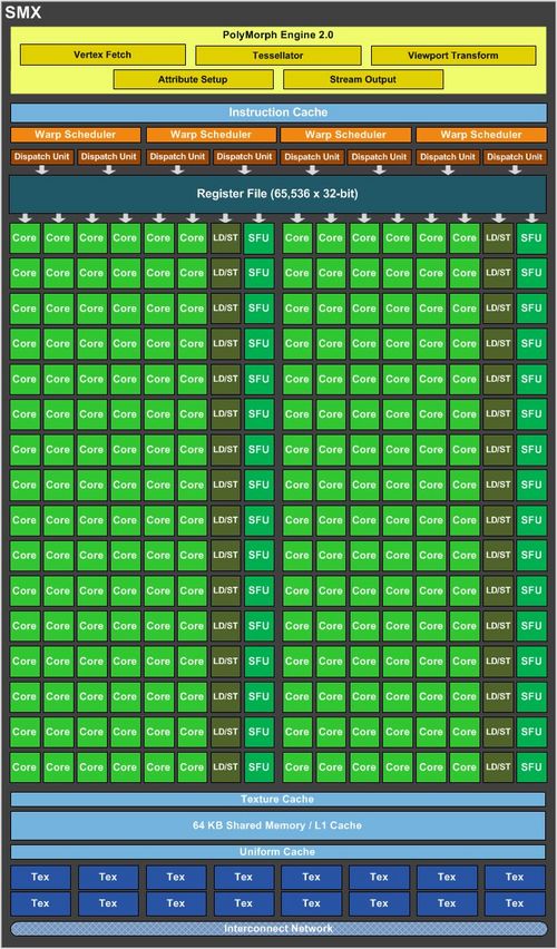 GK104芯片内部的一个SM单元结构示意图