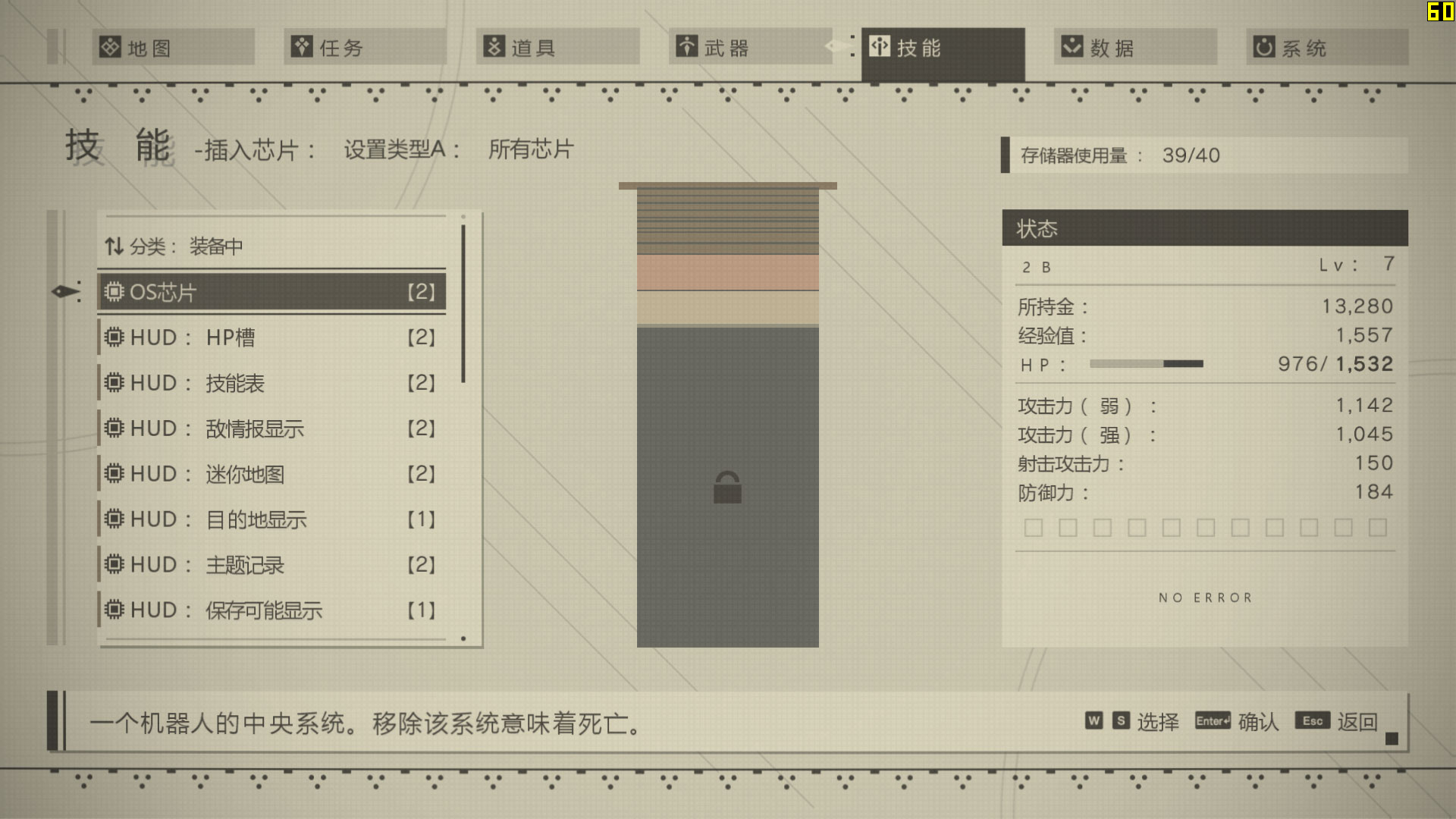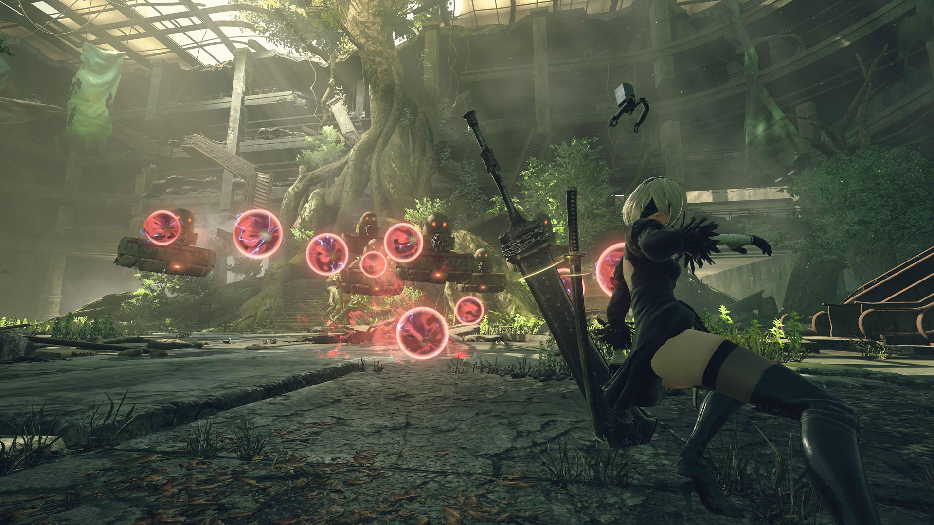 游戏的系统也极具探索性,不同种类的武器和不同招式的排列组合都赋予了2B小姐姐不一样的特色。形态各异的机械Boss也有着不同的攻击方式和自身弱点,保证了游戏新鲜感的同时又有着适当的难度和解谜。多种难度更是赋予游戏更强的生命力,再加上系列一贯的多周目设定,更是延长了游戏的在线时间。