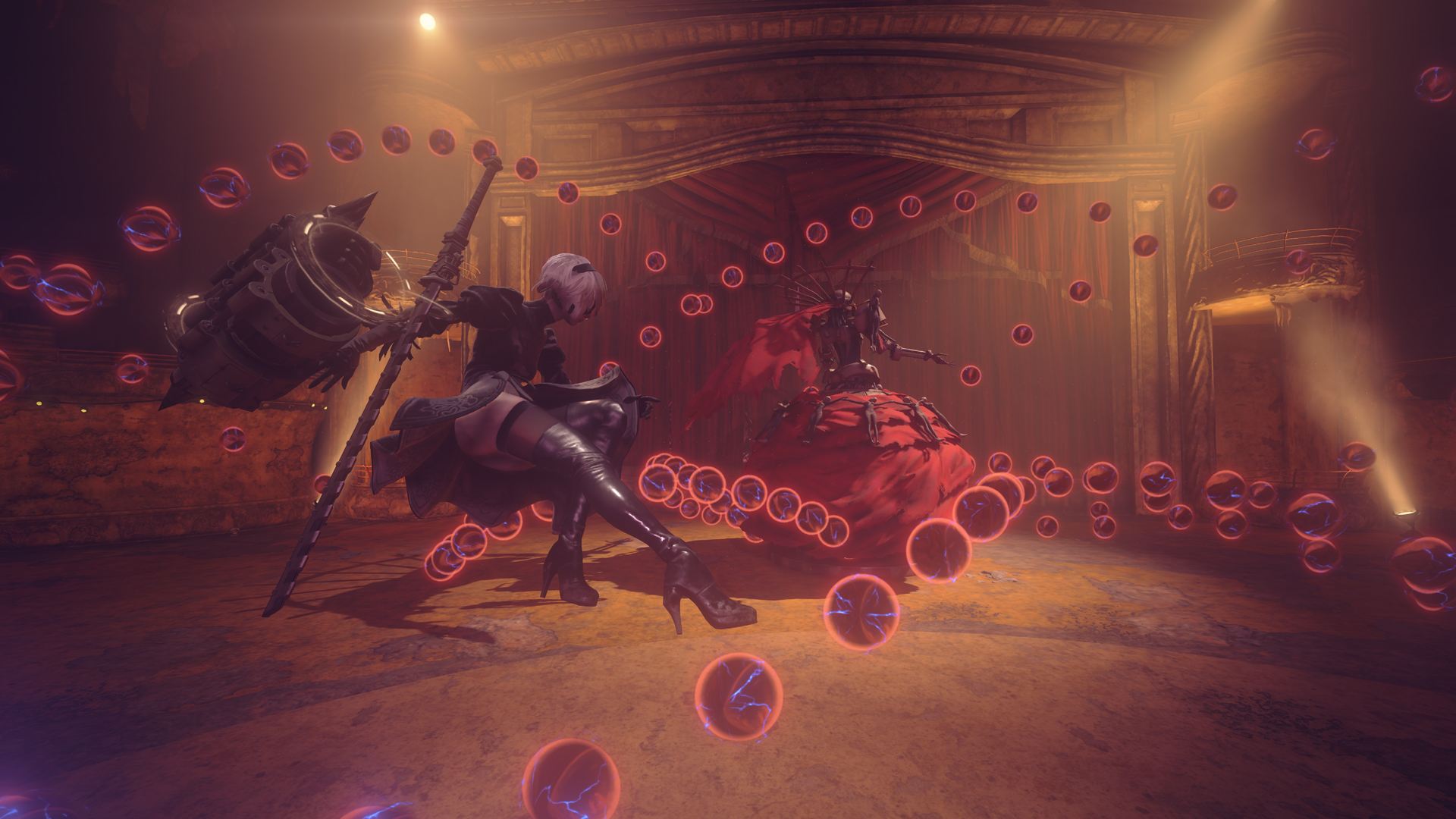 总的来说,游戏性方面《尼尔:机械纪元》是相当白金工作室的一款作品。打击感和动作设计上面都有着相当强烈的《猎天使魔女》、《合金装备崛起复仇》和《鬼泣》的既视感。但白金工作室也意识到2B小姐姐不是贝姐、不是雷电更不是但丁,所以在打击感上白金也定制了一套2B小姐姐专用的打斗风格。与各类“安卓机器人”打斗时裙摆飞起,刀枪与金属碰撞,再加上2B小姐姐一身黑丝与一双高跟,多少玩家一秒变痴汉也不是完全不无道理。