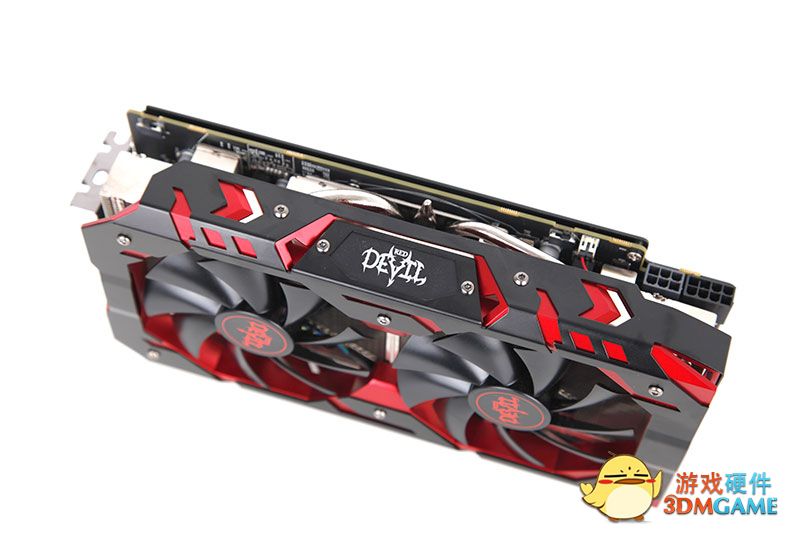 显卡的顶部有一个RED DEVIL的红色信仰灯,显卡的供电为8PIN+6PIN,信仰灯有独立开关!