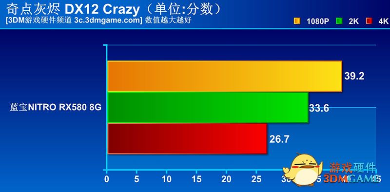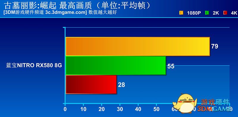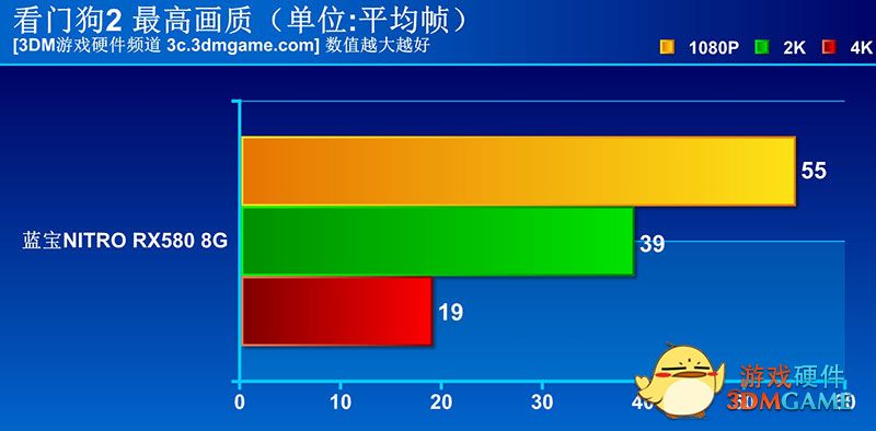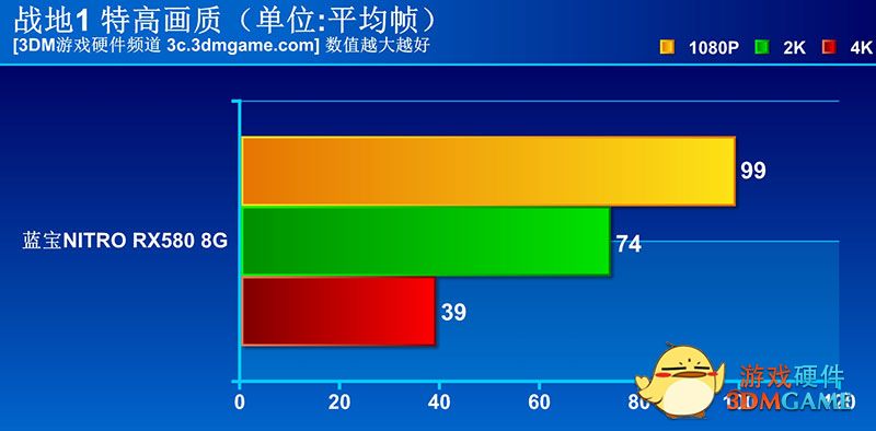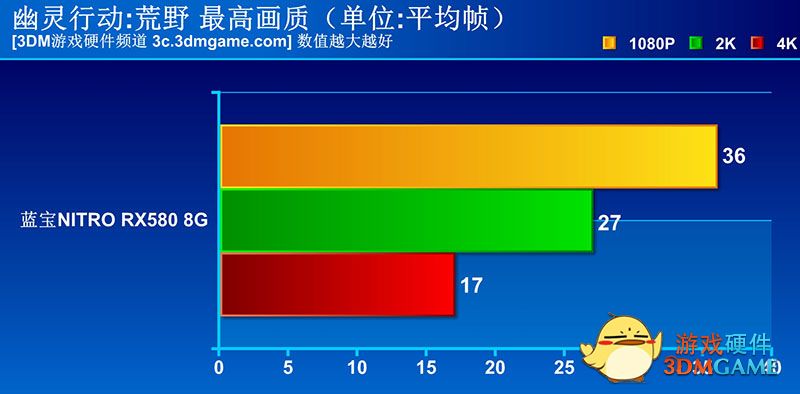 在这一场测试中蓝宝NITRO RX580 8G的表现还是非常喜人的,特别是在4K分辨率下的表现,平均帧数39FPS,最低帧也未曾跌破过30FPS,能战4K说明性能真的很强!