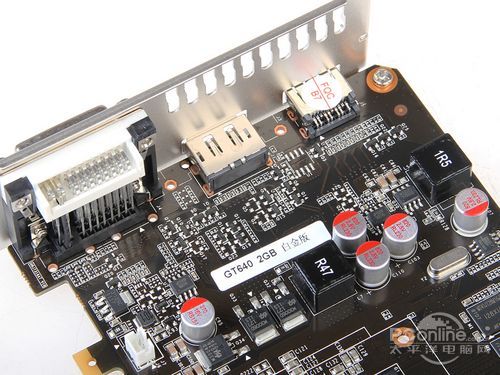 双敏速配GT640白金版提供DVI+VGA+HDMI+Displayport四接口,可满足多屏输出。