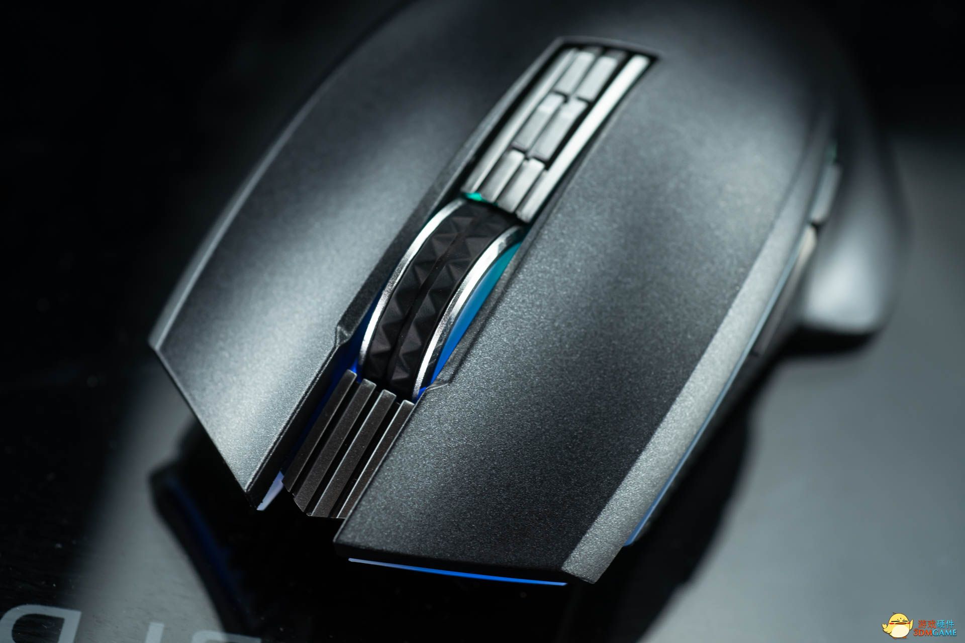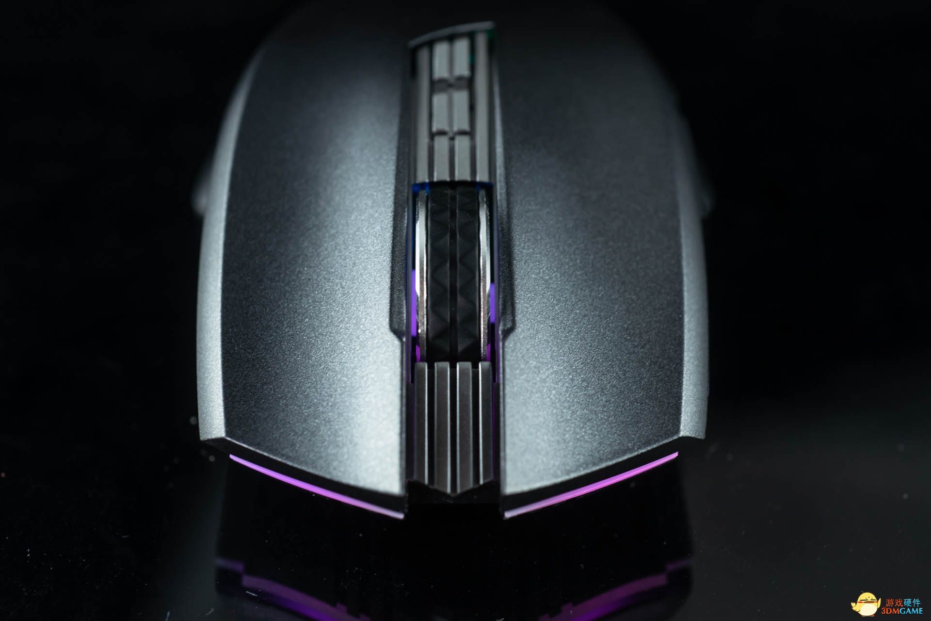 鼠标滚轮两侧为金属材质,并且做了很细腻的高光倒角。滚轮区域四条纵向的装饰条设计也非常有新意,而后部的DPI调节键也是采用了相同的设计,观感上也更为统一。
