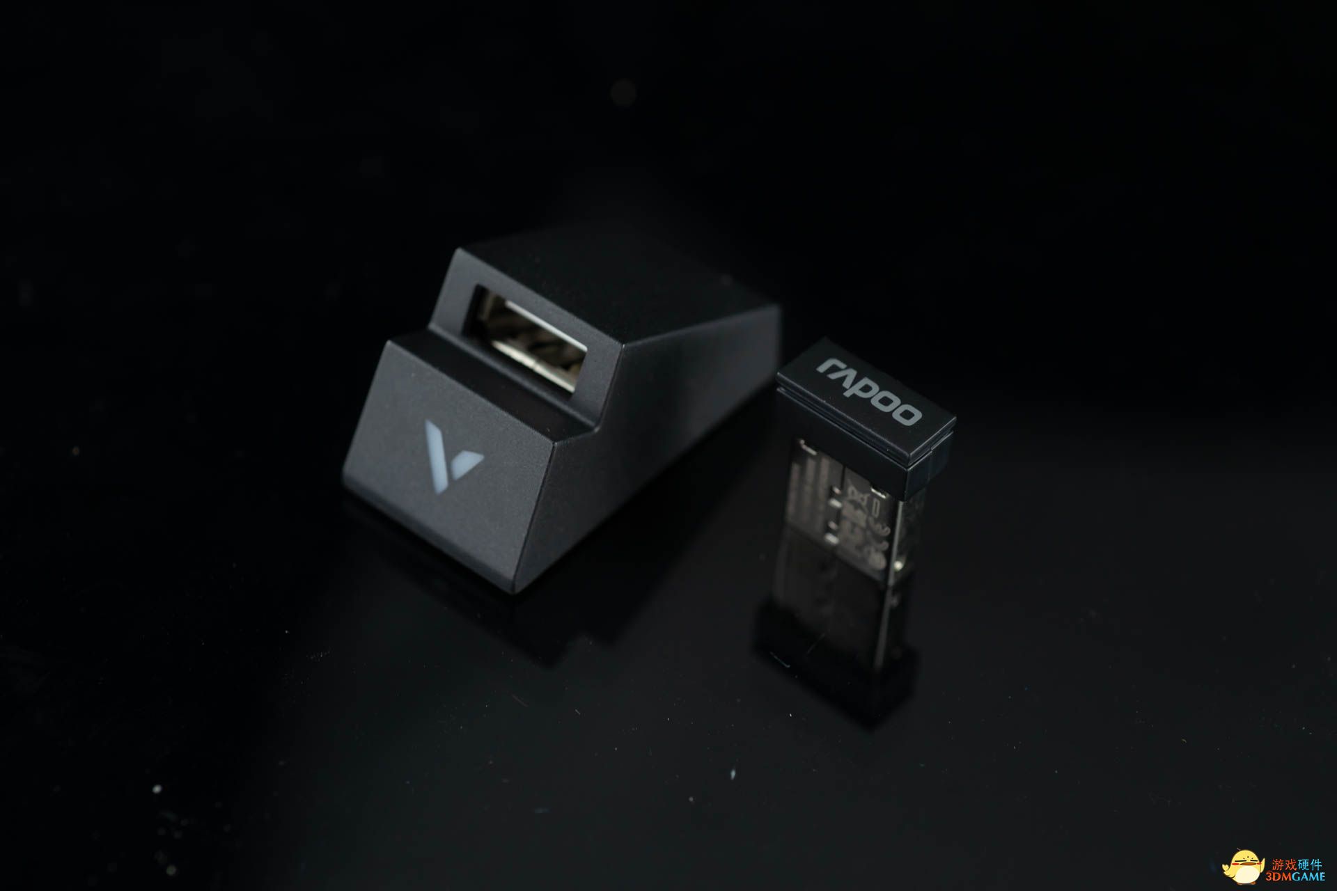 除了2.4GHz连接器之外,雷柏也随机附送了一条1.8mm的线材和一个接收延长器。线材和鼠标通过micro-USB接口相连,线材头部也跟随鼠标接口形状设计,插上之后严丝合缝。