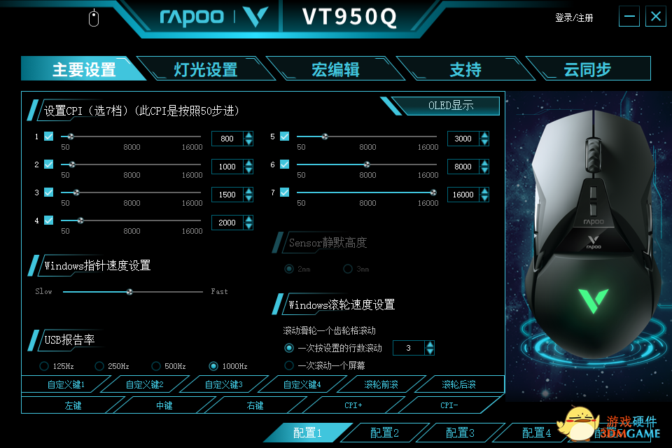 雷柏的驱动也支持完善的云存储功能,玩家在本地设置好鼠标参数后通过登录账号即可把配置文件上传到云端,在更换电脑时只需要下载驱动就可以快速同步设置到新电脑上,这也是一个非常使用的功能。