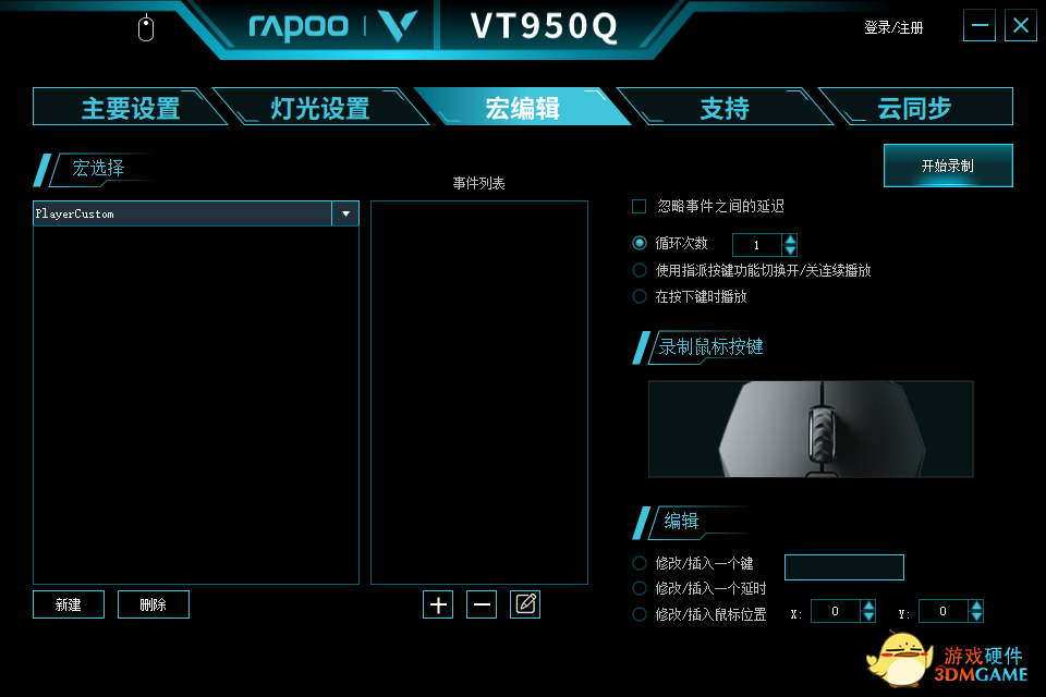 灯光可以自定义多种发光模式和颜色,而游戏鼠标必备的宏录制功能也自然必不可少。
