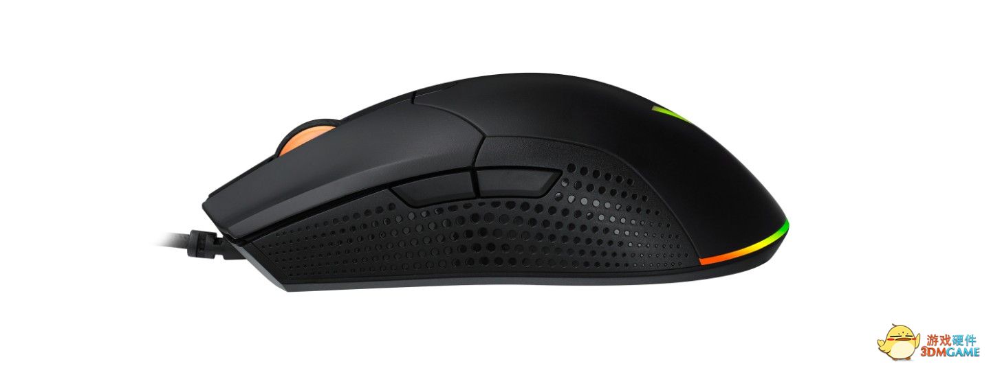精心勾勒鼠标曲线,后半部分精心勾勒鼠标曲线,后半部分微凸,为手心提供厚实支撑;前半部下凹后缓缓回升,为手指预留放置空间。左右侧裙采用孔状纹理工艺,通过注塑一次成型,具备透气排汗效果,提供更为出色的防滑性能,持久使用亦不易磨损。