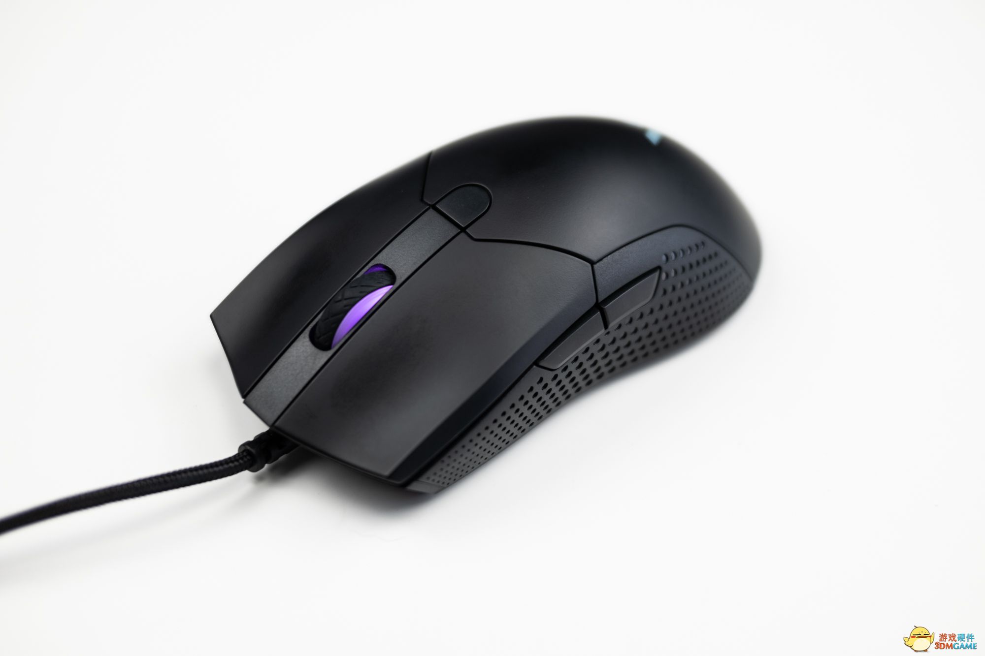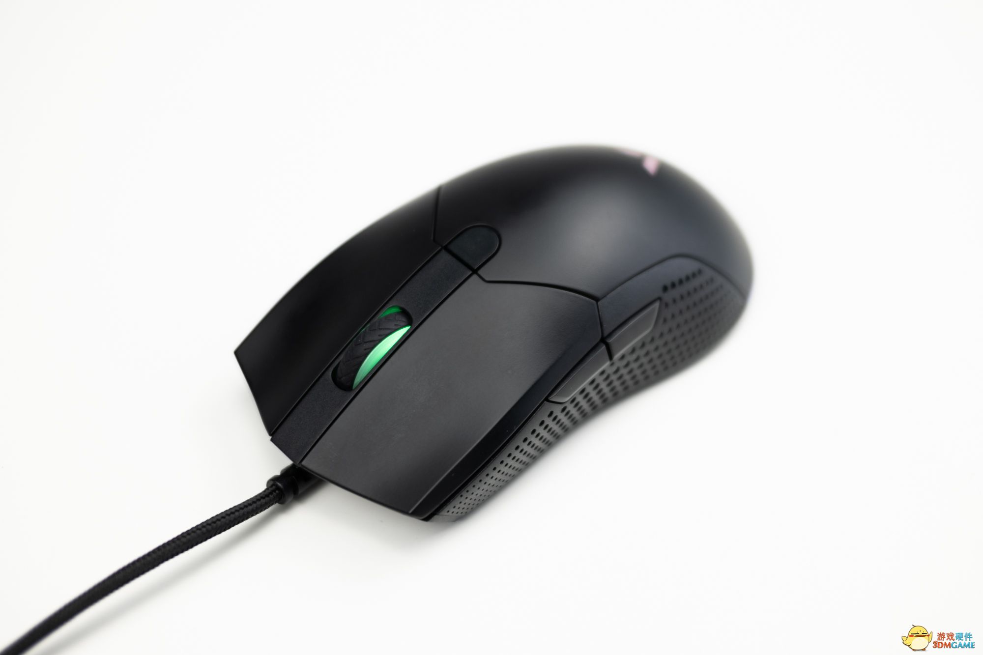 鼠标侧面采用了挖孔的设计,触感非常干爽。在保证基本的防滑功能之外,这样的设计也避免了橡胶侧边设计的鼠标在长时间握持时积攒汗液的问题。