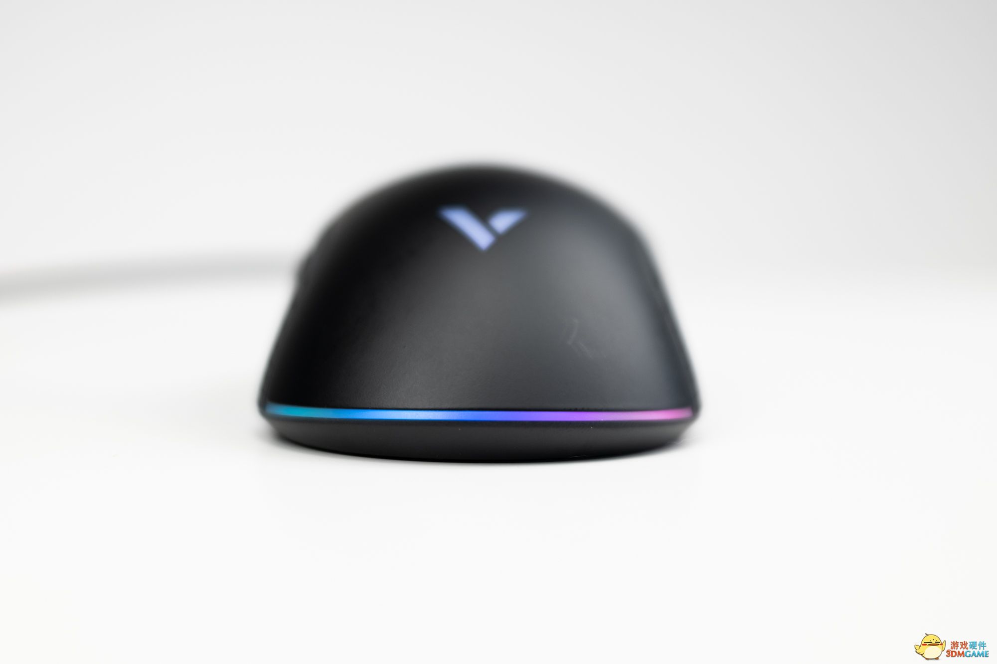 雷柏V30的RGB灯在鼠标滚轮、后部的Logo以及尾部都有所体现,色彩饱和度和亮度都非常不错。