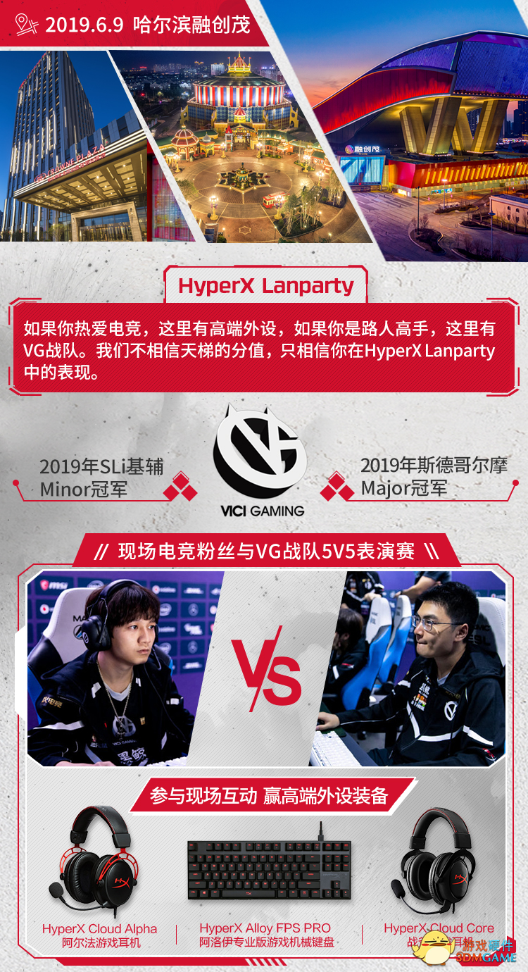 6月在哈尔滨有一场最为重头的HyperX Lanparty,现场邀请VG电子竞技俱乐部旗下的职业战队与本地电竞KOL对决。VG电子竞技俱乐部成立于2012年,旗下拥有DOTA2、英雄联盟、守望先锋、CS:GO等多个项目分部,其中DOTA2分部取得第四届DOTA2国际邀请赛亚军,2014年ESL-One纽约站冠军,2019年斯德哥尔摩Major冠军。