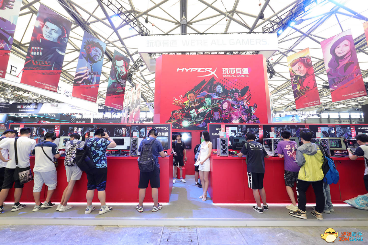 在今年Chinajoy HyperX展台上,笔者看到了HyperX全明星阵容以吊旗形式装饰展台上方。