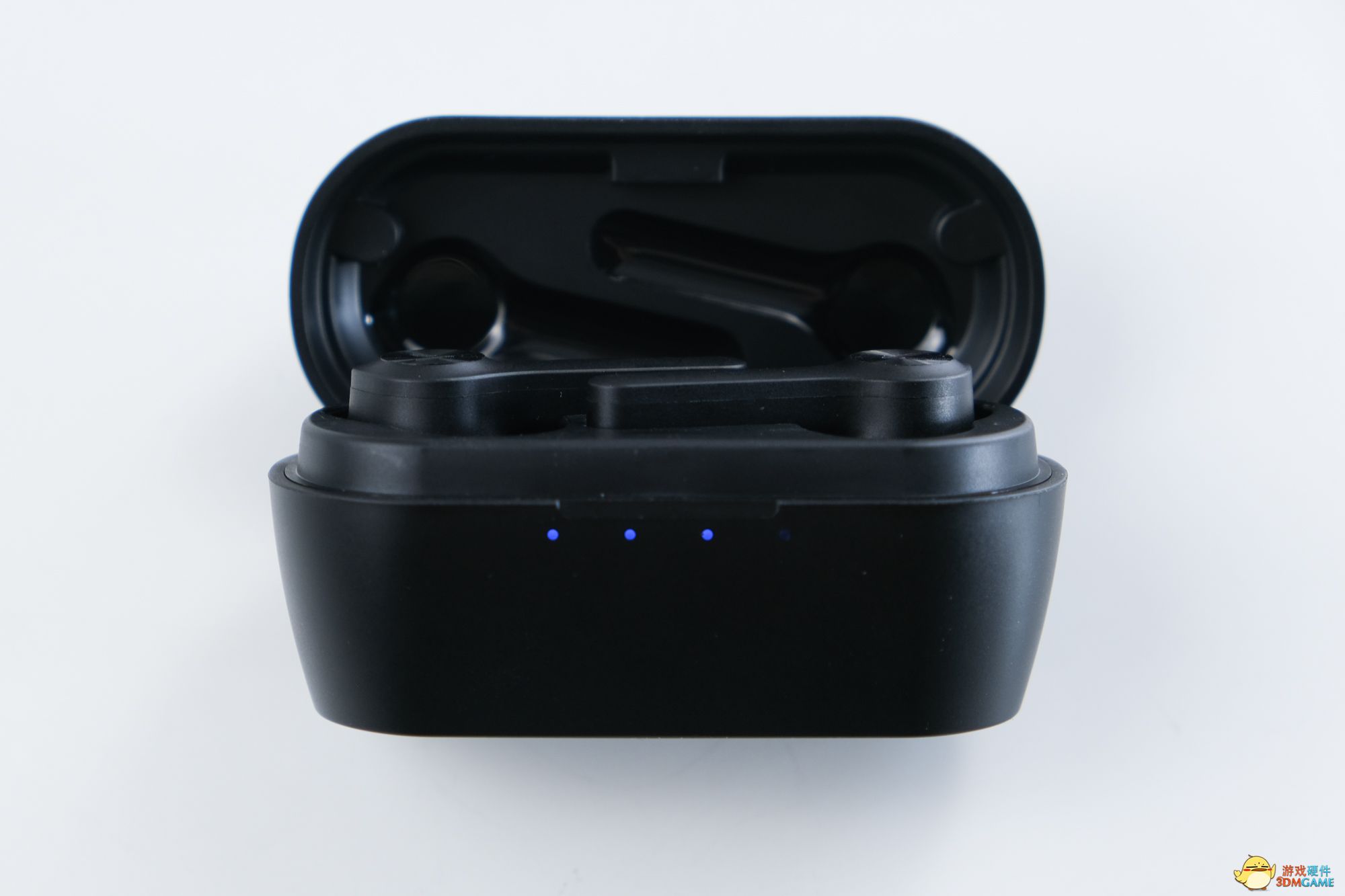 分体式耳机+充电盒是TWS耳机的标准形态,雷柏VM700的收纳盒体积不大,在侧面拥有指示灯表明点亮。收纳盒本身内置800mAh容量的电池,能够提供30小时的额外续航时间。充电盒本身充电接口为Type-C,方便用户直接通过手机充电器为它充电。