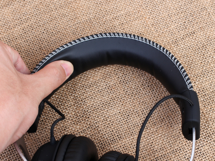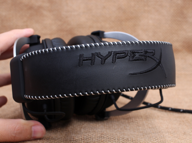 HyperX Cloud Silver耳机头梁边缘采用了白色丝线缝制,精致的走线配上立体HyperX的logo剌绣,彰显不凡的品味。