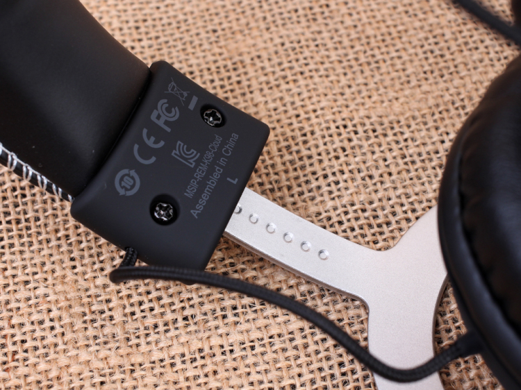 清晰伸缩刻度点的金属拉杆可以让我们很精确地固定左右耳机的位置,并且在头梁接头上使用了类肤塑体收头,保证了与头部接触的舒适度。内侧印有耳机L\R及耳机身份码等信息。