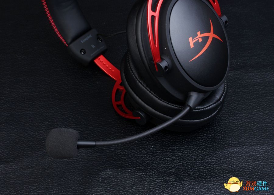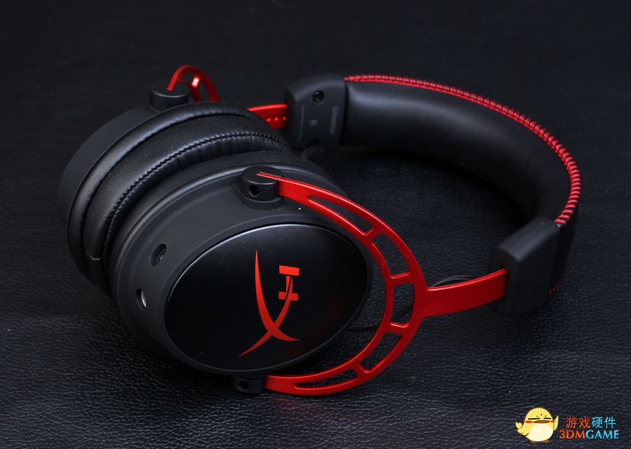 红黑的外观设计,有几分冷酷的味道。耳罩外壳上有HX的品牌标识,外观辨识度很强。相比于老款Cloud耳机,头梁与耳机主体之间用到暗红色的铝制金属作挂件进行镂空处理,不仅视觉效果更佳,还减轻一部分重量。