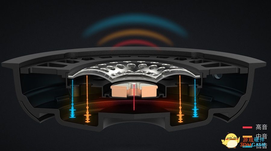 一般游戏耳机的驱动单元多为传统的单音腔,即在单元内的同一个空间里面,包含了高、中、低三段声音的输出,这样三种声音很容易混在一起。玩吃鸡的玩家都清楚,游戏中脚步、枪声都是些中、高音,过重的低音会掩盖这两种声音,影响到在游戏中敌人的定位辨别。
