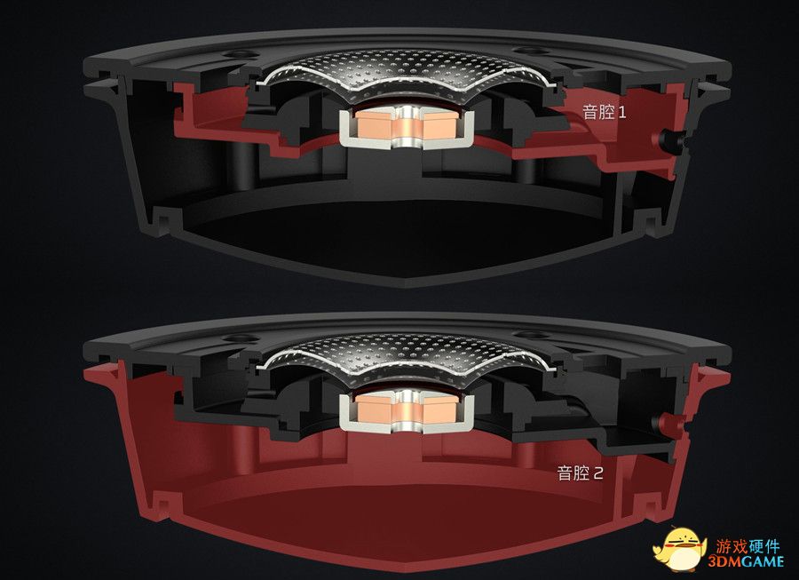 HyperX在Alpha阿尔法里配备两个音腔,把低音部分的输出与高、中音分离开,减少低音对其他两种声音的影响。