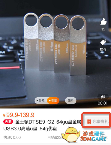 今年双11期间,金士顿天猫官方旗舰店预售活动推出了“分享有礼”活动,只要您将宝贝分享给3名好友,收到分享的好友复制淘口令后打开手淘即可领取指定面额优惠券。3名好友全部领取成功后,您就可以获得指定面额的优惠券。数量有限,先到先得呦!