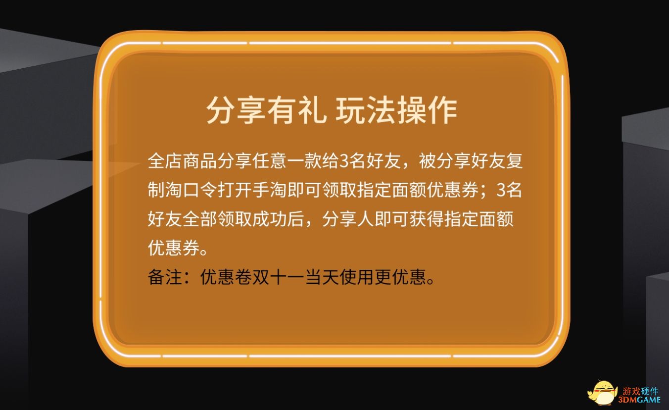 今年双11有了一个新的玩法,那就是“分享有礼”活动,卖家将设置不同等级的任务机制,将优惠带给大家。其中,用户在商品详情页分享宝贝给好友后,收到分享的用户可以获得立减优惠券,而分享者也可领到商家的优惠券,将更多优惠不断传递下去。