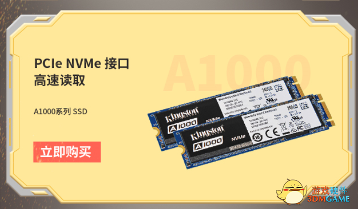 金士顿SA1000系列固态硬盘为标准的2280接口并支持NVMe规范,共有240GB、480GB两个容量版本参与预售。在4通道群联E8主控和3D NAND闪存的助力下,最高读写速度分别可达1500MB/秒和1000MB/秒,保证了其优异的反应速度和超低的延迟时间。