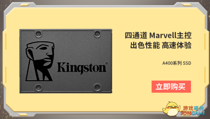 金士顿A400为2.5英寸SATA接口固态硬盘,共有120G、240G、480G三个容量版本参与预售,最高读写速度分别可达500MB/s、400MB/s,可快速启动系统,加载游戏场景以及文件传输,显著提升电脑的运行效率。
