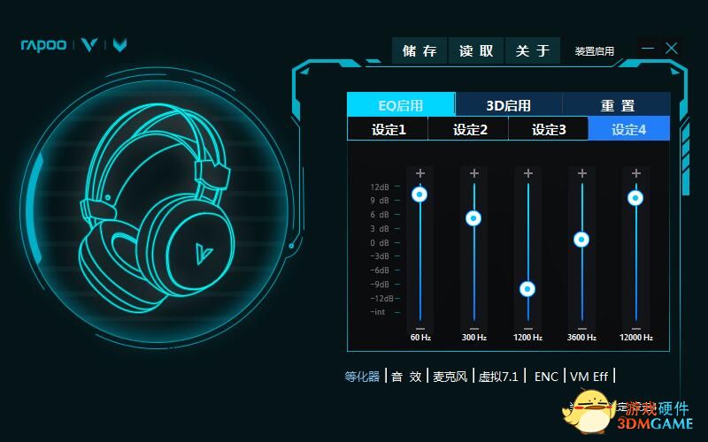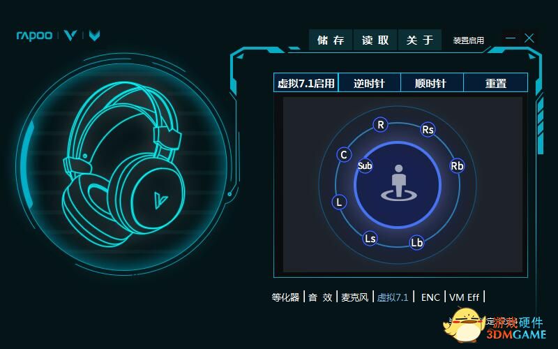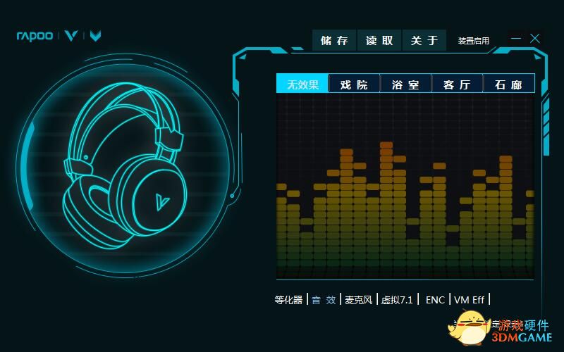 雷柏提供的驱动程序除了可以解锁虚拟7.1声道功能之外,也加入了EQ调音功能。我们在这里手动调整了一个EQ方案,针对前面音质上的短板进行手动调整,按照上图中的方式来调节之后,整个耳机在听歌时候的表现提升明显,声音会表现的更有层次更好听。
