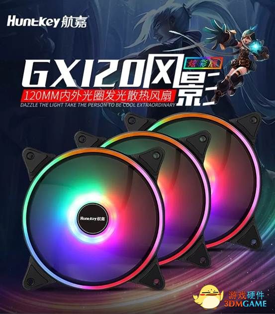 新风、宽体、钢化玻璃、视觉炫彩是航嘉GX系列机箱的重要组成部分,而机箱风扇则是新风系统的基石;在机箱中电源和风扇上,您可以搭配航嘉GX600电源和GX120风影RGB风扇,这样能让您的主机更加酷炫高效!